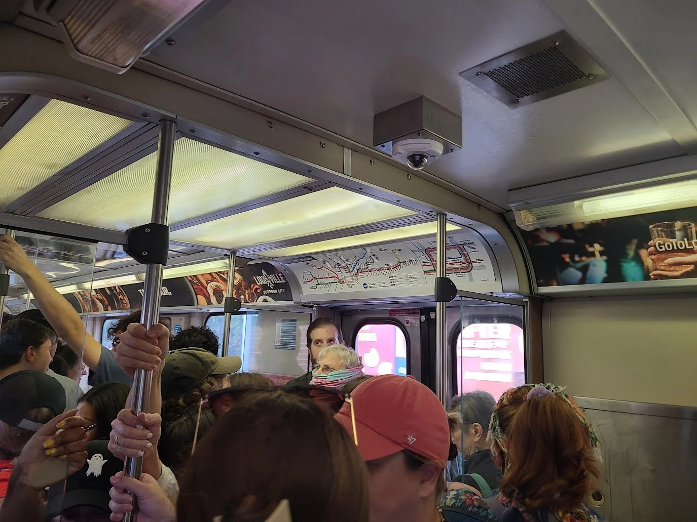 squeezed onto packed CTA trains and buses filled with fellow marchers