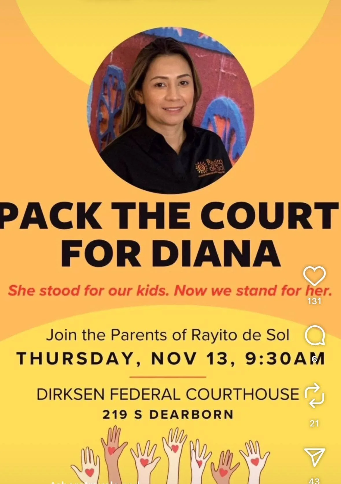Join the parents of Rayito del Sol at the courthouse and stand in solidarity with Ms. Diana.